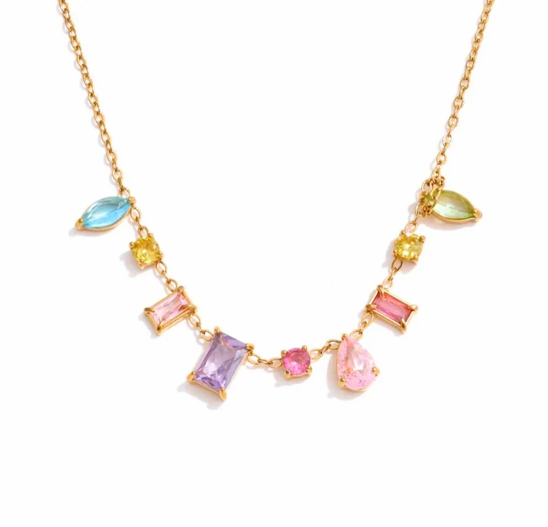 美しいカラフルなジルコニアをあしらったシンプルでエレガントなステンレスネックレスです