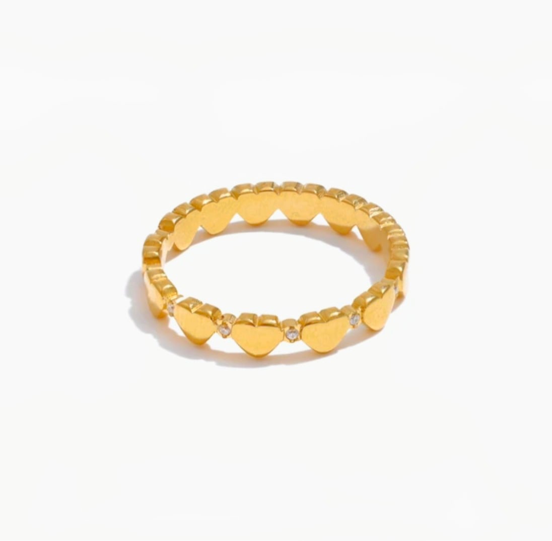 美しいハートのデザインと輝くジルコニアを組み合わせた、オシャレでエレガントなステンレスリングです!