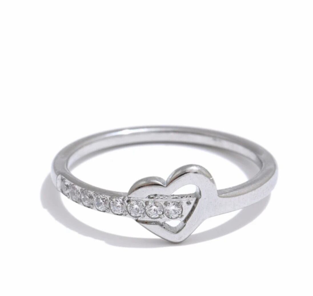 美しいハートのデザインと輝くジルコニアを組み合わせた、オシャレでエレガントなステンレスリングです!