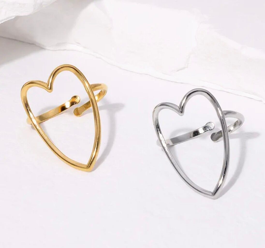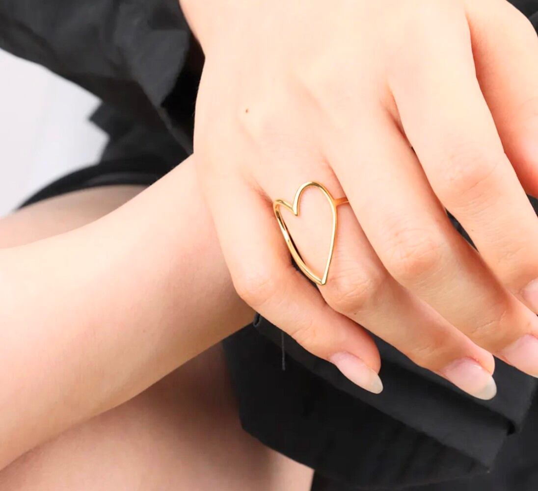 大きめのハートデザインが施されたフリーサイズ・調節可能なステンレスリングです!