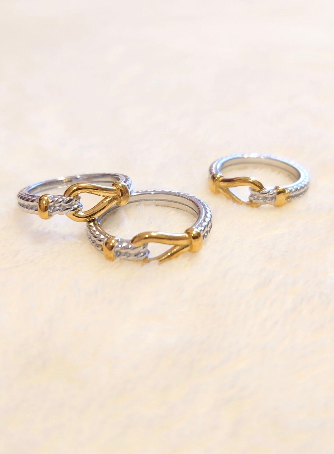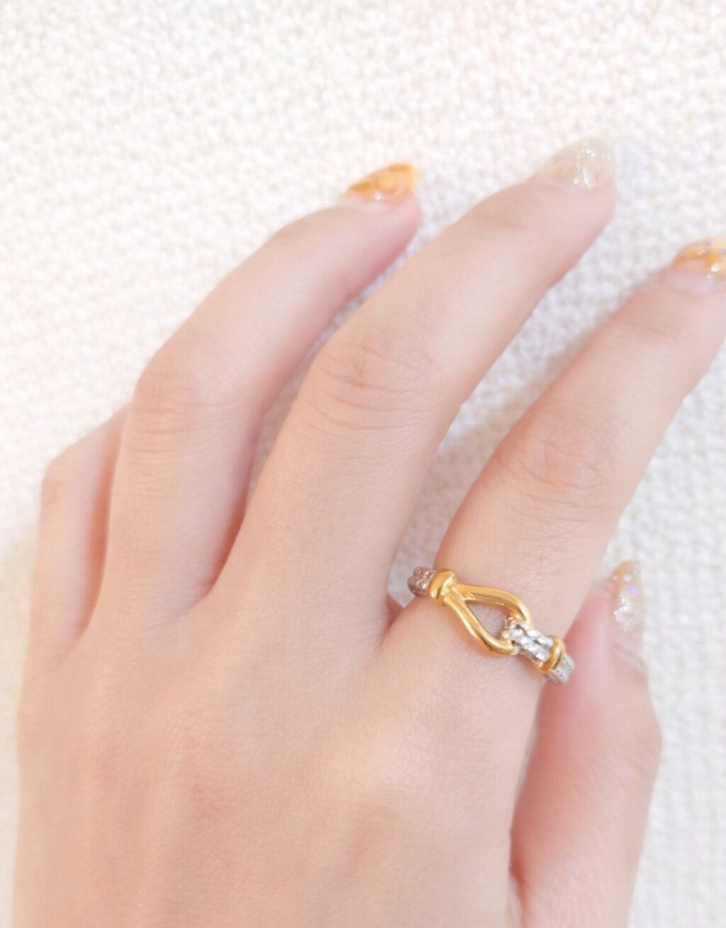 シルバーとゴールドの華やかな組み合わせが指元で美しく輝きスタイリッシュな印象を与えます