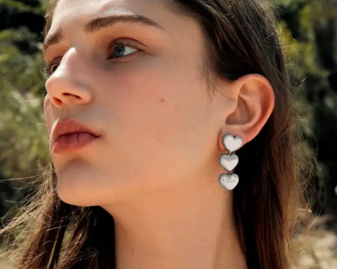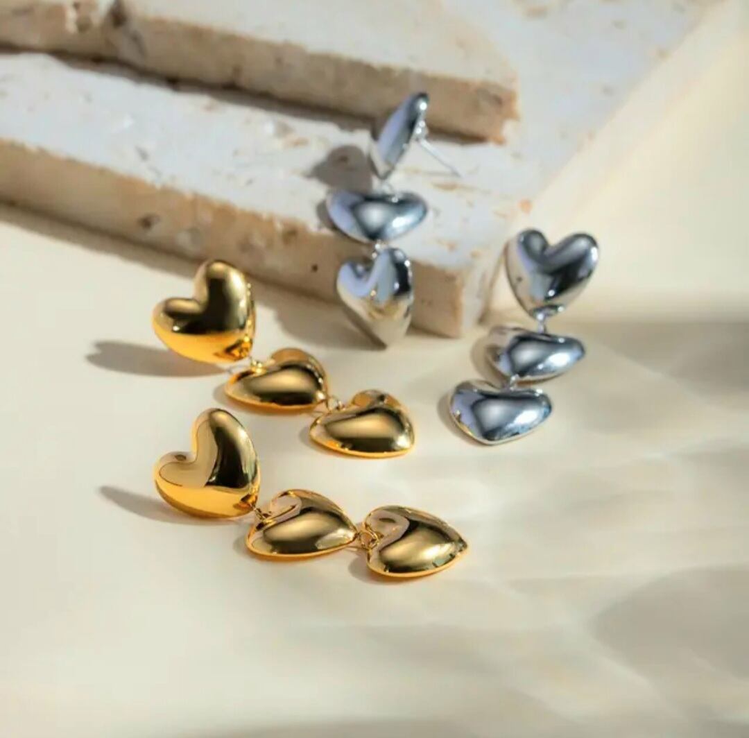 美しいトリプルハートのデザインが特長のステンレスピアスです