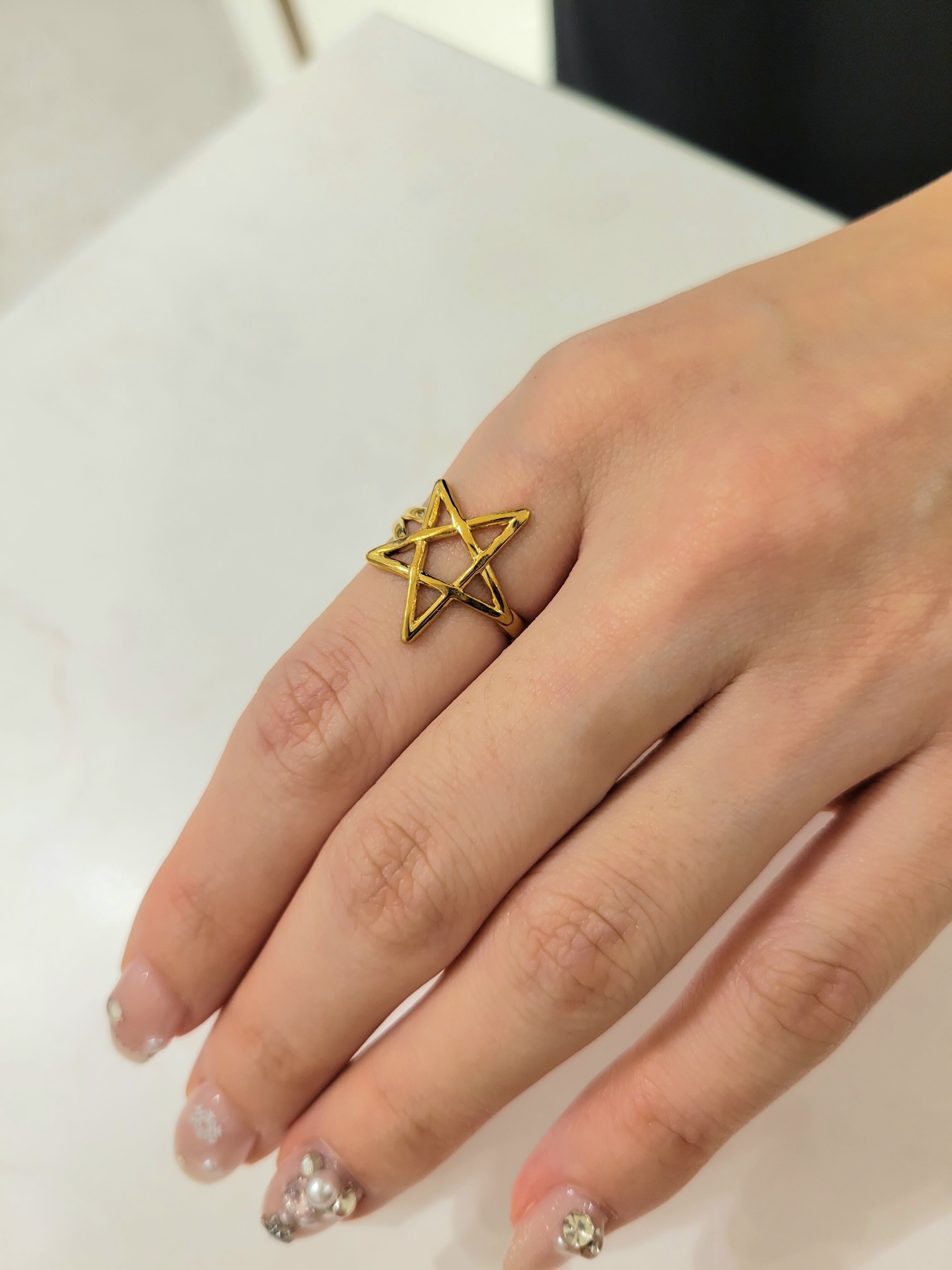 シンプルでありながらも華やかな星のデザインが施されたリングです。アレルギーに配慮したステンレス素材を使用しているため、肌が敏感な方でも安心してお使いいただけます。星のモチーフが、あなたの指先に特別なアクセントを加え、日常のコーディネートや特別な日にもぴったりのアイテムとなるでしょう。サイズ調整が可能なので、どなたでも心地よく着用できるのも嬉しいポイントです。
